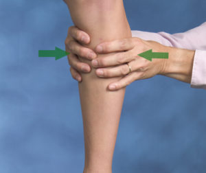 The syndesmotic tests include the squeeze, external rotation, cotton, and fibular translation tests. A syndesmotic sprain is one in which the ankle mortise, the junction of the tibia and fibula, is separated. This occurs with forceful dorsiflexion as the wider base of the trapezoidal shaped talus forces the tibia and fibula apart. The syndesmotic squeeze test can be performed in supine or sitting. It begins at the proximal tibia/fibula and the clinician begins squeezing the tibia/fibula together proximally and progresses distally towards the ankle until pain is felt. The squeezing motion will gap the syndesmosis and the farther from the ankle that pain is elicited, the more severe the sprain. Care must be taking to squeeze the tibia/fibula and not anterior/posterior soft tissue. This is not meant to be a Homan sign for DVTs.
